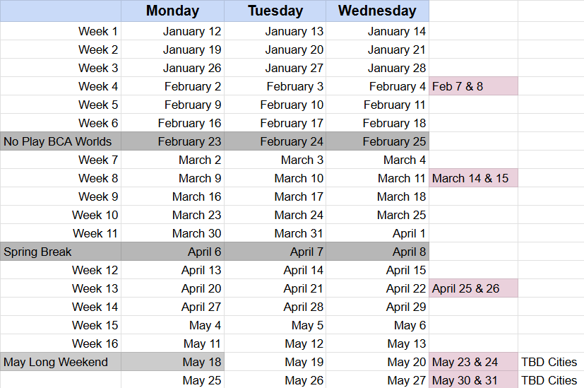 Click the division to learn what it has to offer. Please also take the time to read the player guide with the FULL explanations of our policies, bookmark this website and follow our Facebook Page to stay up-to-date!